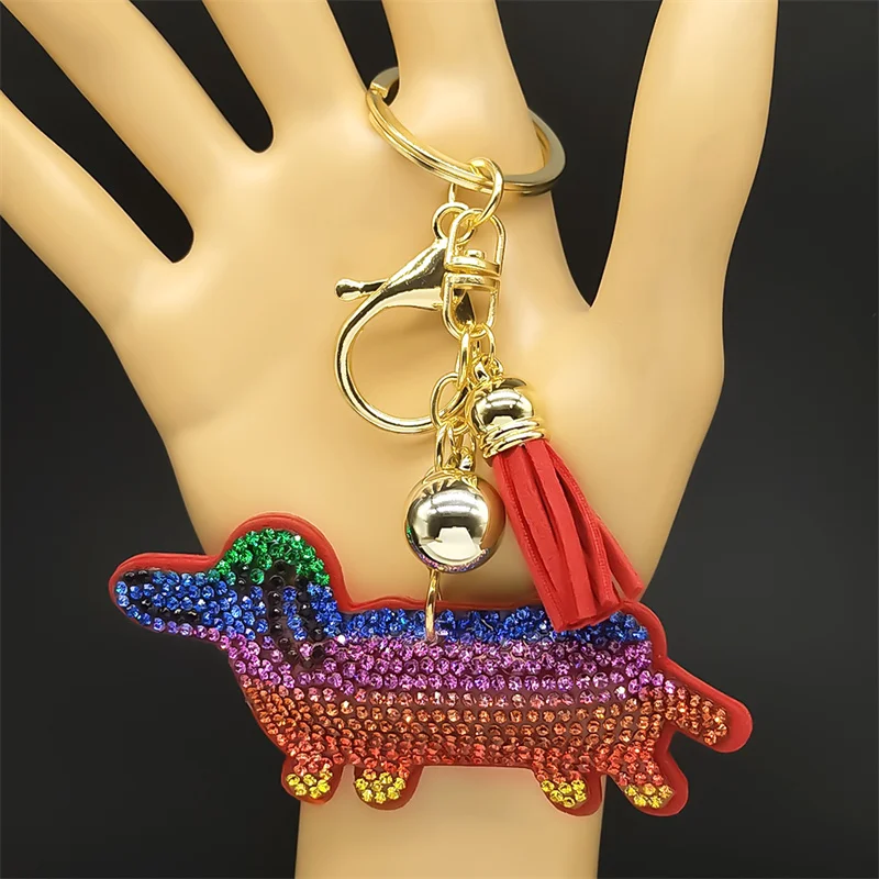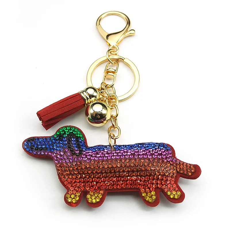 Red Color Crystal Tassel Cute Dachshund Keychain