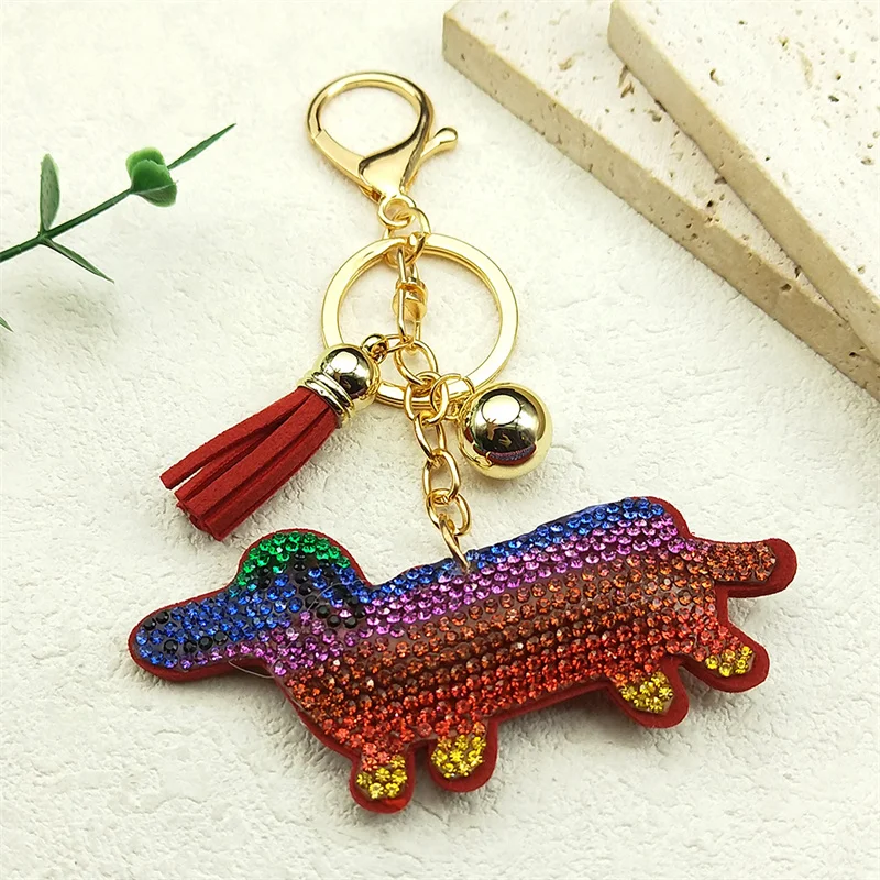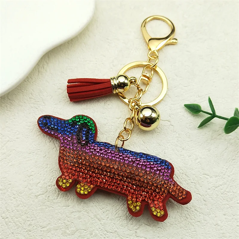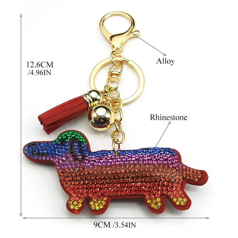 - Red Color Crystal Tassel Cute Dachshund Keychain