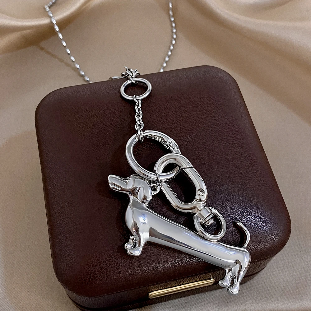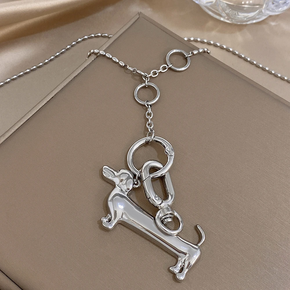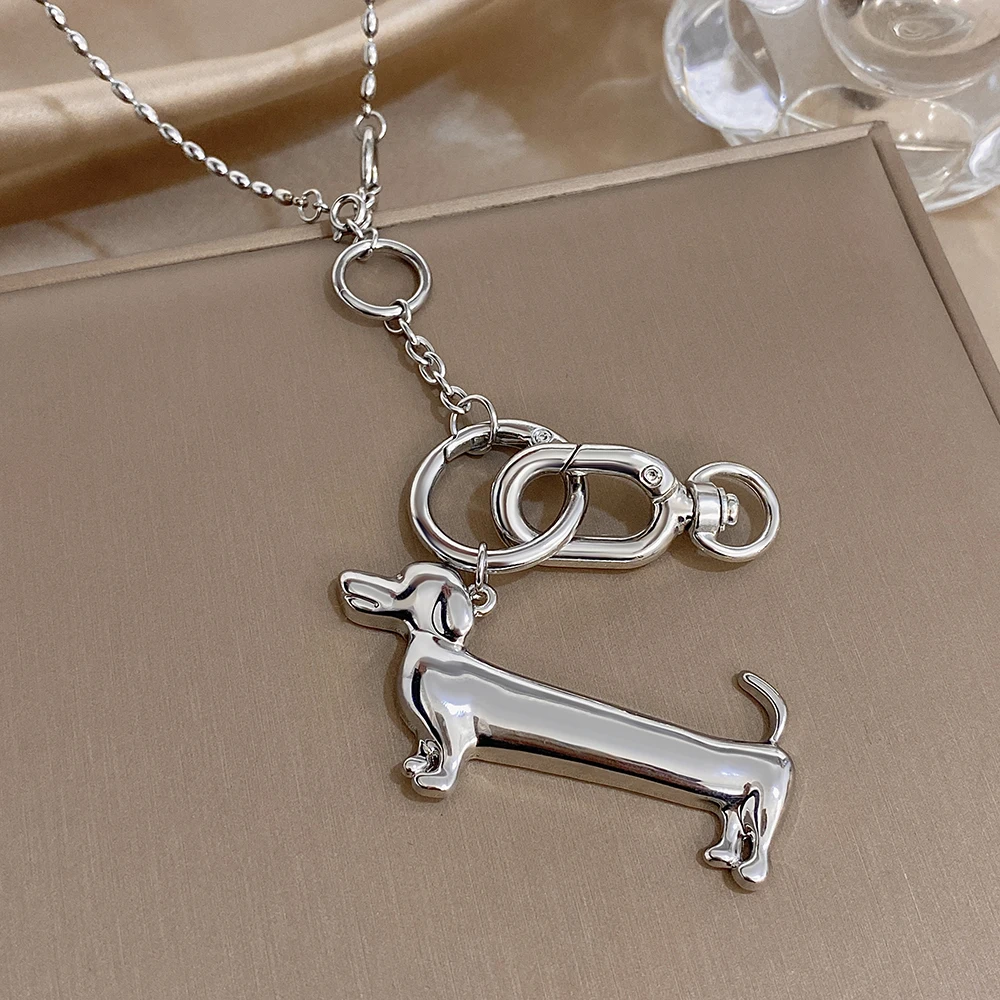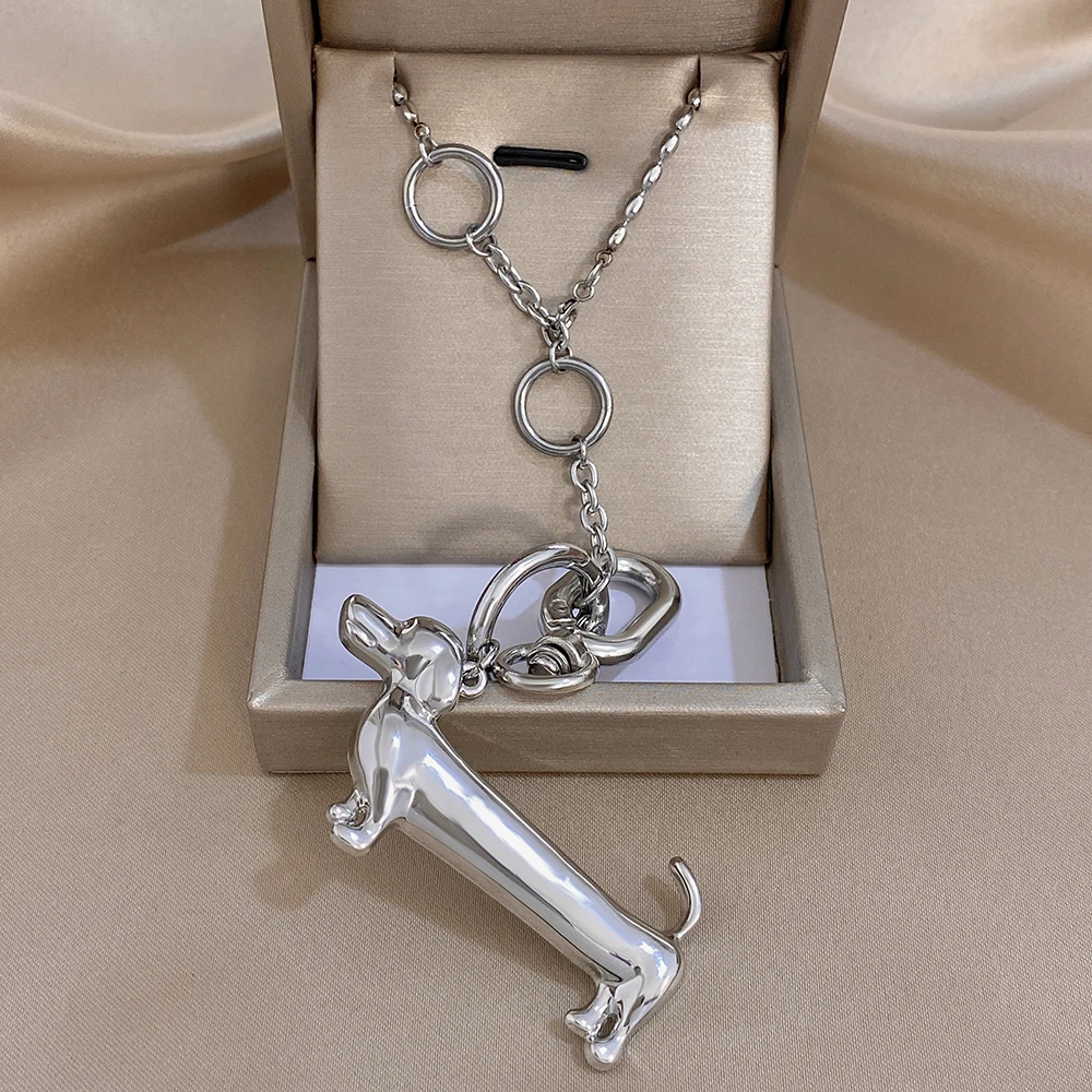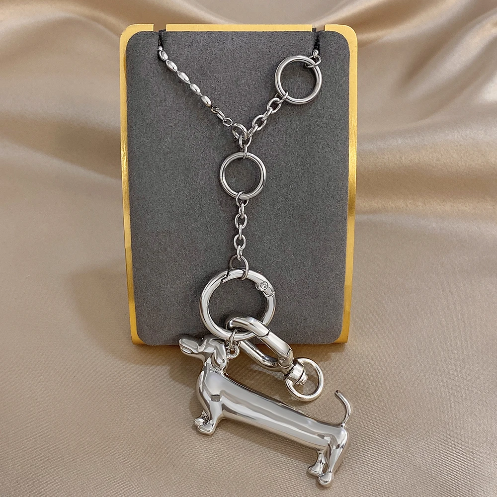 Unique Sliver Design Smooth Surface Dachshund Necklace
